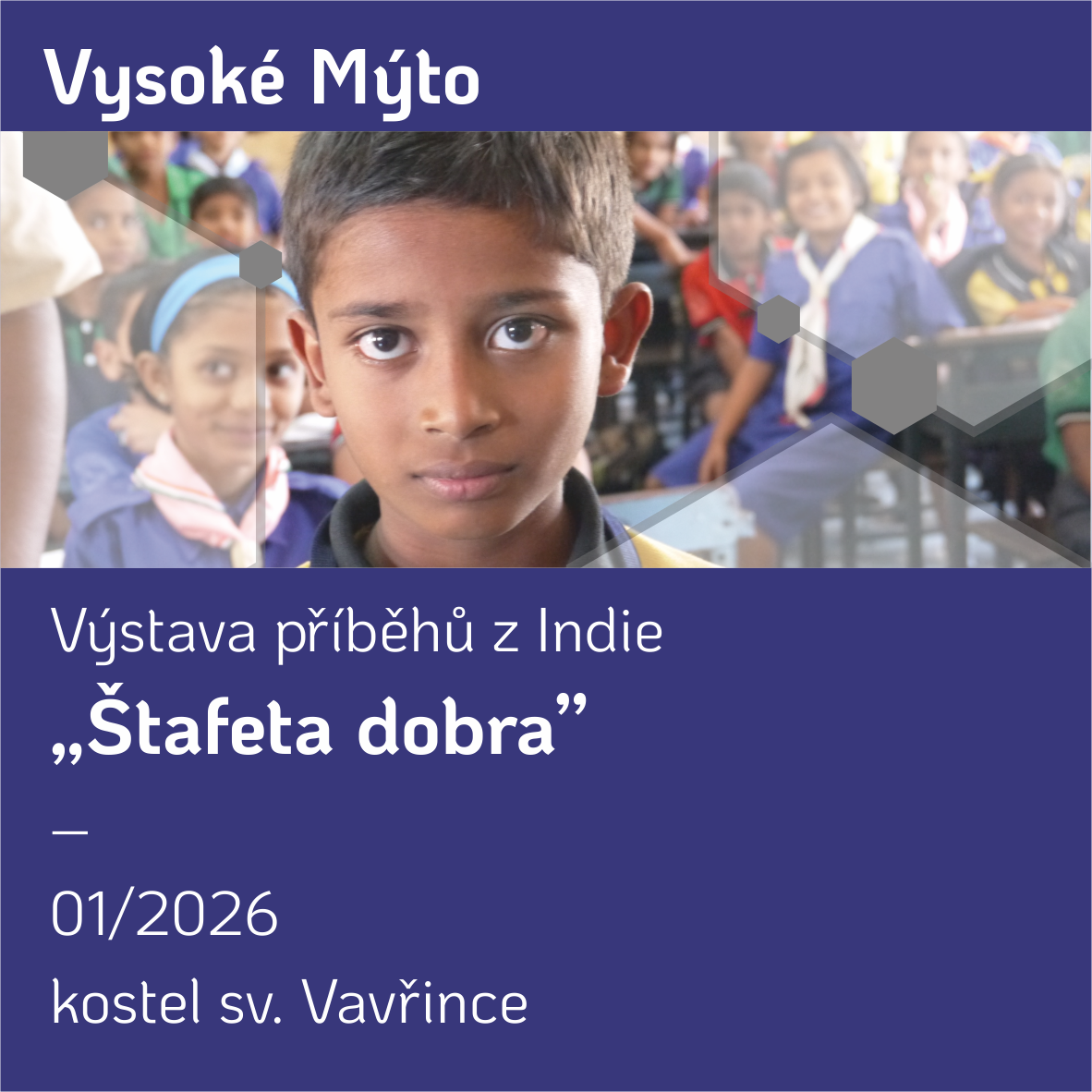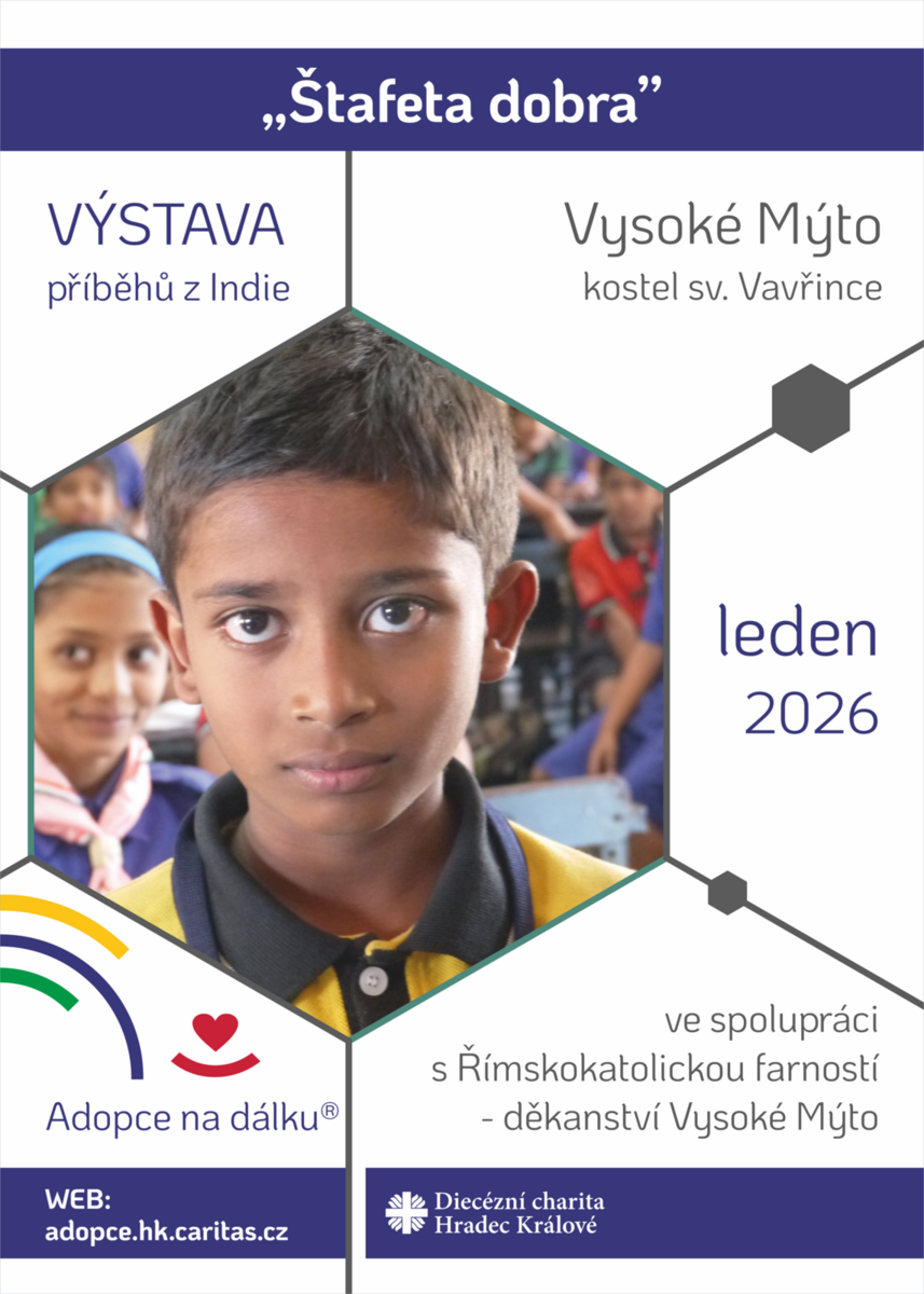 Zveme Vás v lednu nového roku do kostela sv. Vavřince ve Vysokém Mýtě, kde si můžete prohlédnout naši putovní výstavu „Štafeta dobra“, která představuje příběhy z Indie.