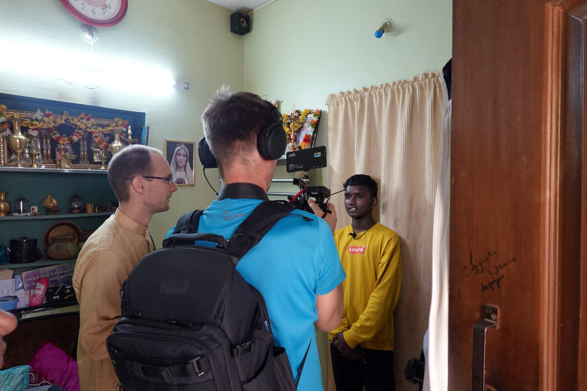 Martina jsme navštívili v bytovém domě, kde žije se svou rodinou. Při našem příchodu působil trochu nervózně — není divu. Přijeli za ním lidé z daleké Evropy, z organizace, která zprostředkovává podporu od dárce, jenž mu hradí vzdělávání. Navíc s kamerou.